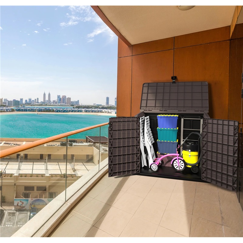 It delivers the maximum amount of useful storage space in a minimal footprint, making it ideal for smaller or difficult-to-navigate porches, patios, and decks.