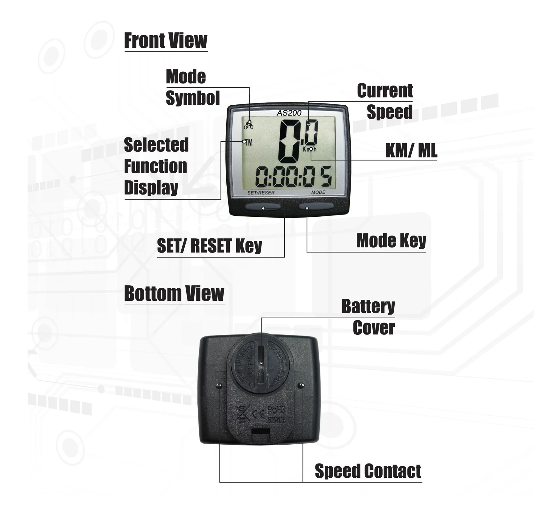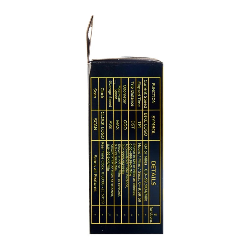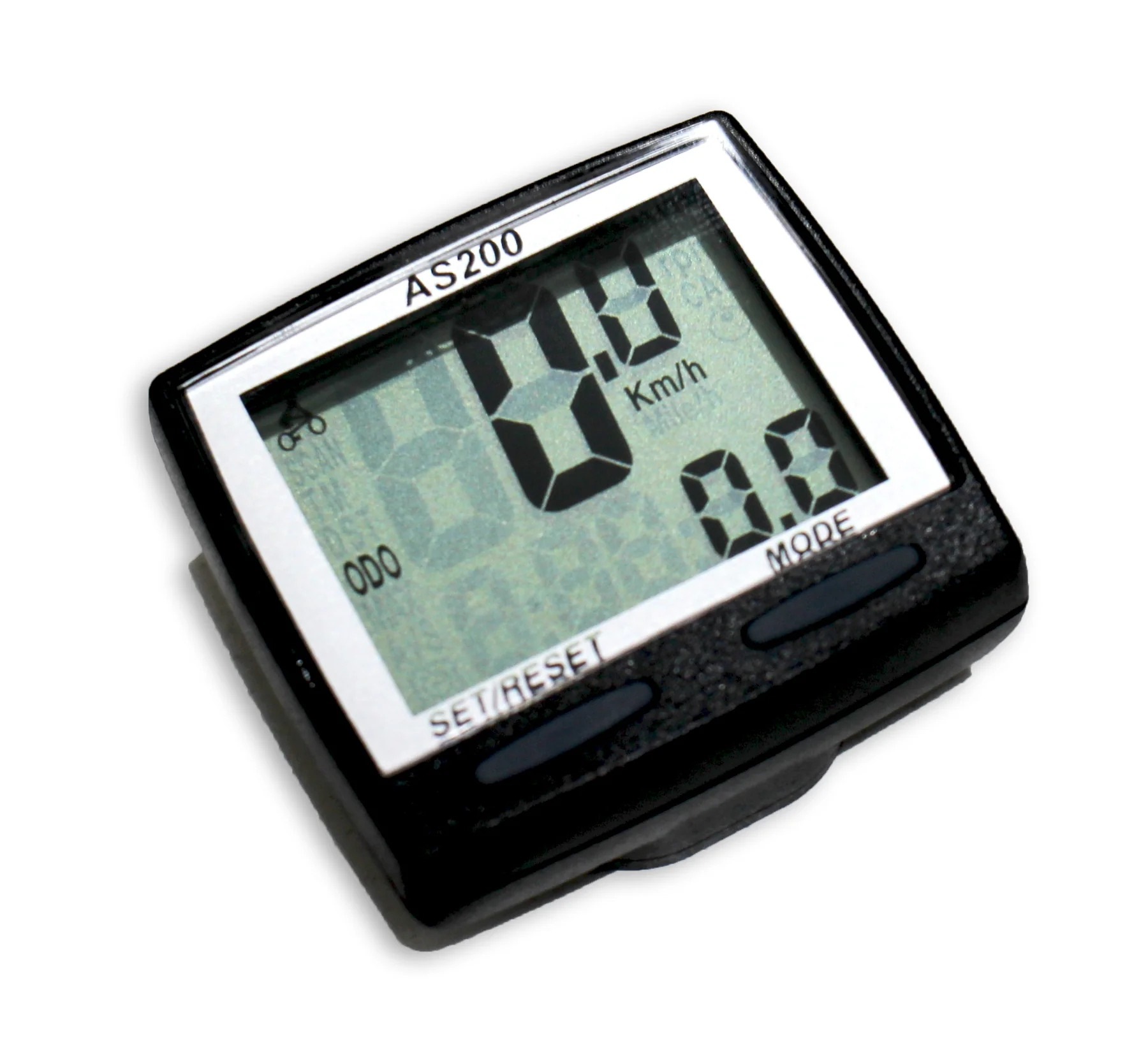 It has 8 functions: Calculate the current speed, elapsed time, distance, odometer, max. speed, average speed, clock and scans.