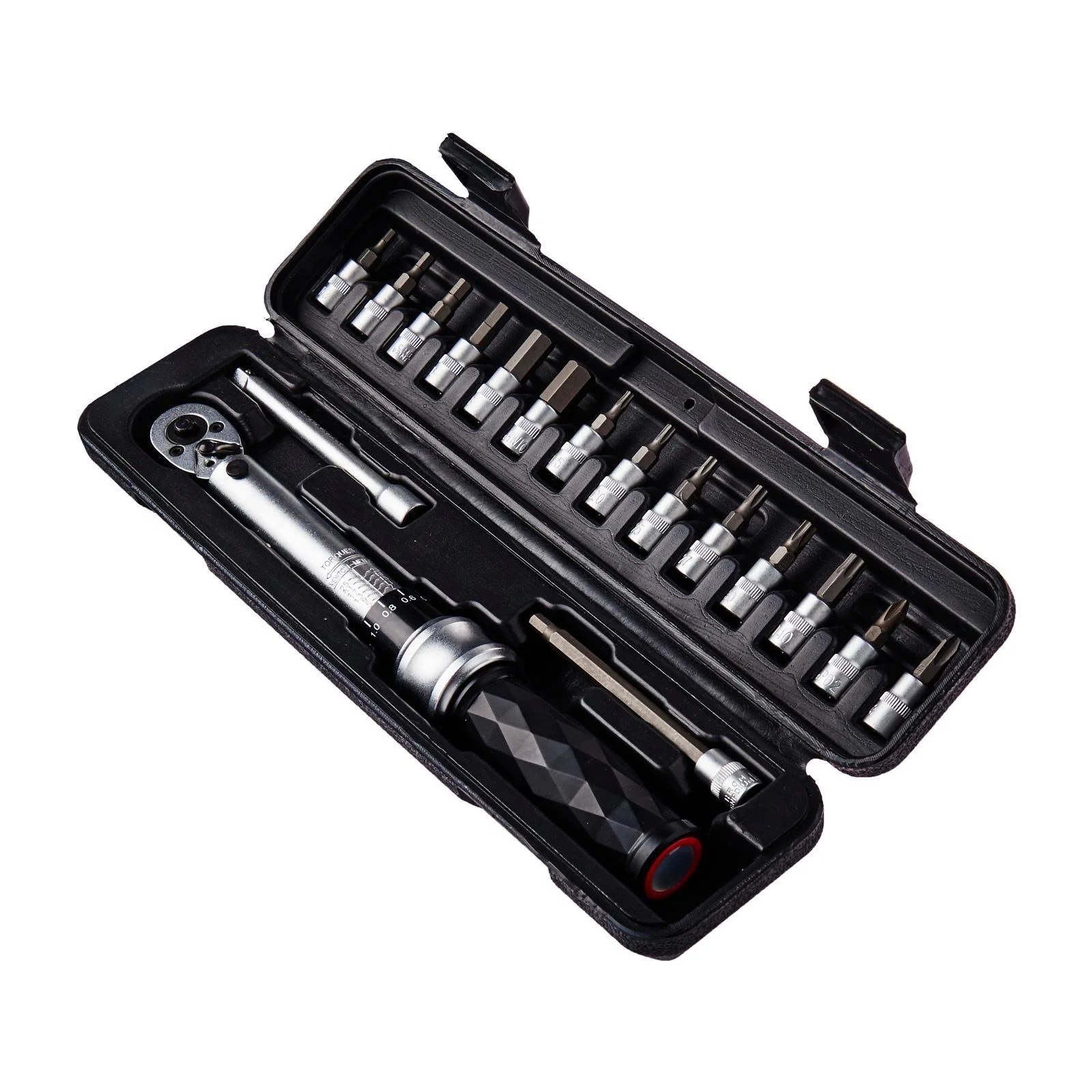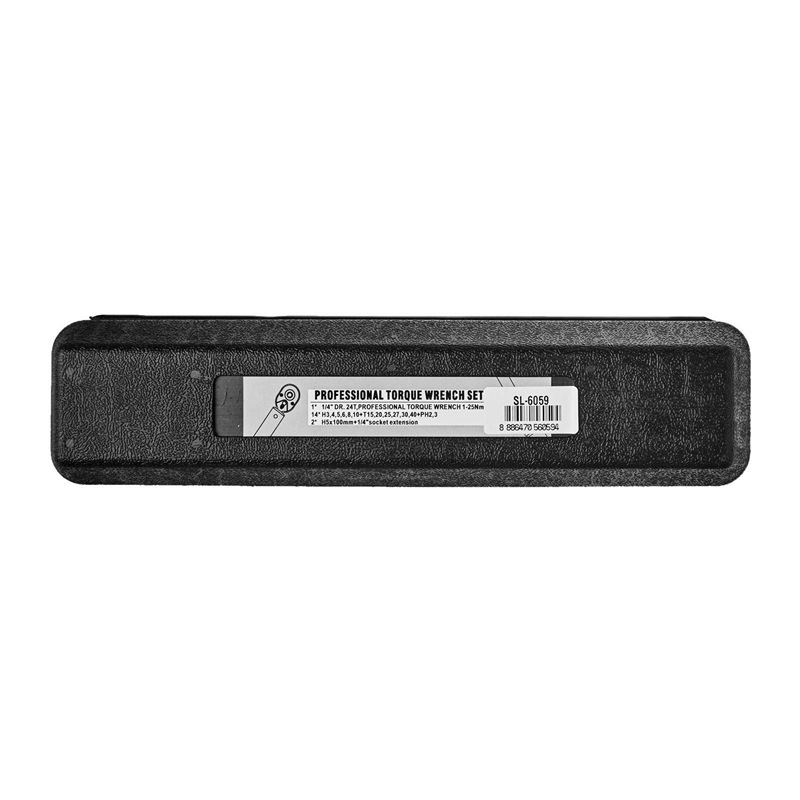 The high quality 1/4" square drive socket torque wrench set includes H3/ H4/ H5/ H6/ H8/H10, T15/ T20/ T25 / T27/ T30 / T40, PH2/ PH3 bits.