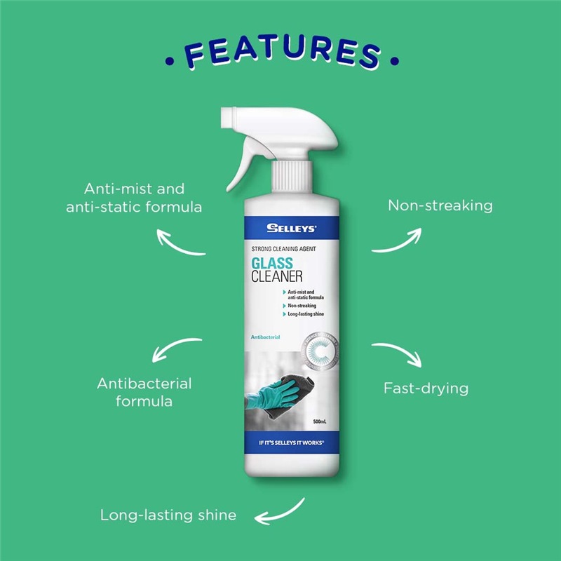 Home » Cleaning Supplies » Windows & Glass Cleaners » SELLEYS GLASS CLEANER ANTI-BACTERIAL 500ML