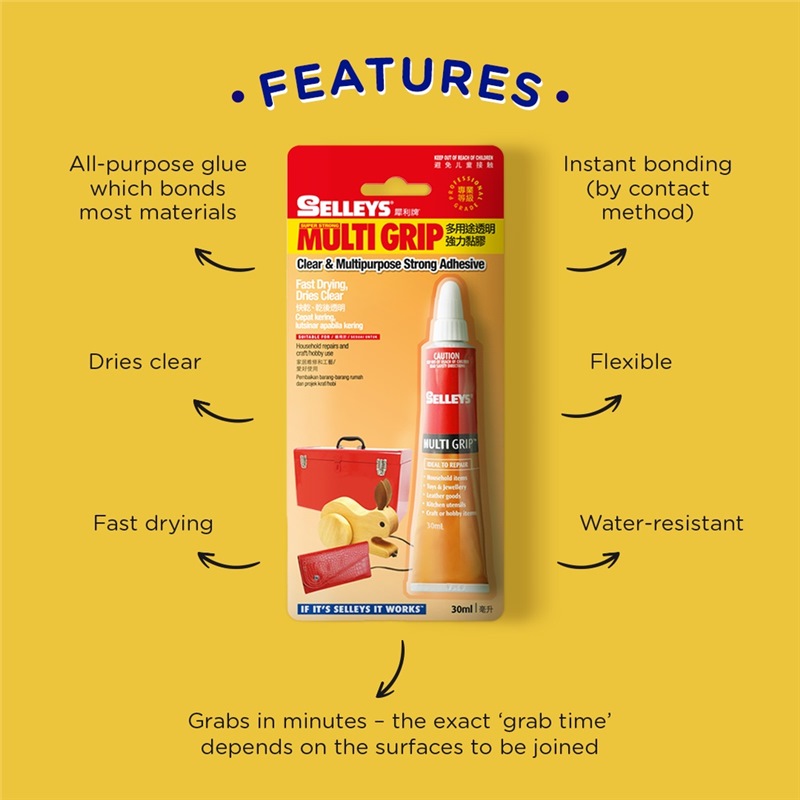 Home » Chemical Supplies » Adhesives & Glues » SELLEYS MULTI GRIP 30ML-106858
