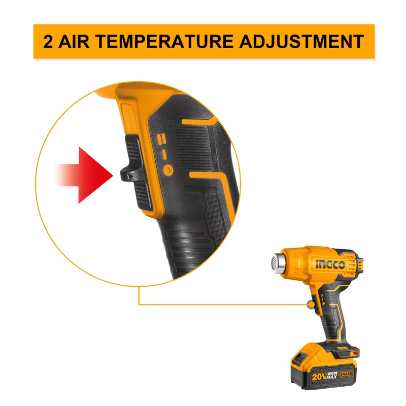 Home » Power Tools - Cordless » Other Cordless Power Tools » INGCO 20V LI-ION HEAT GUN 300/550°C 1X4.0AH + CHARGER & CASE HGLI20025