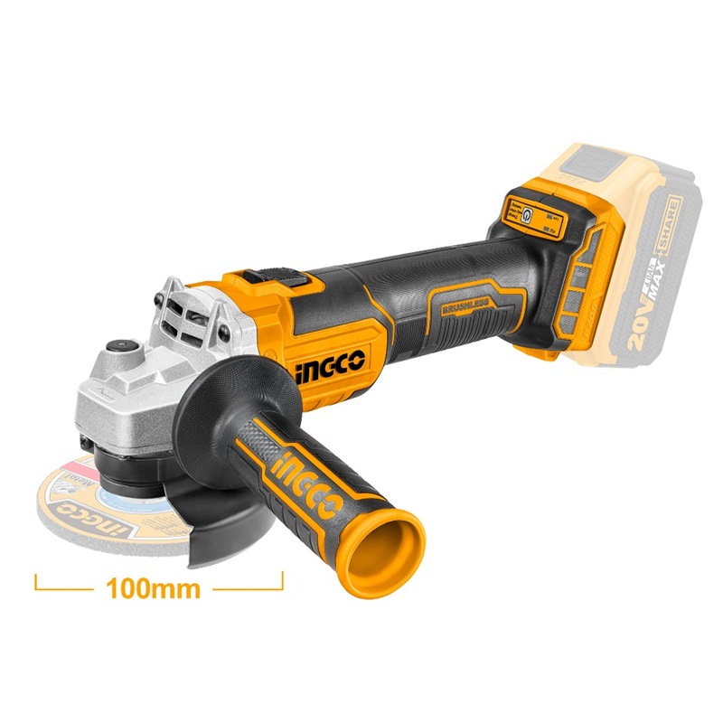Home » Power Tools - Cordless » Bare Units » INGCO 20V LI-ION 4" 100MM ANGLE GRINDER, CAGLI201008 (BARE UNIT)