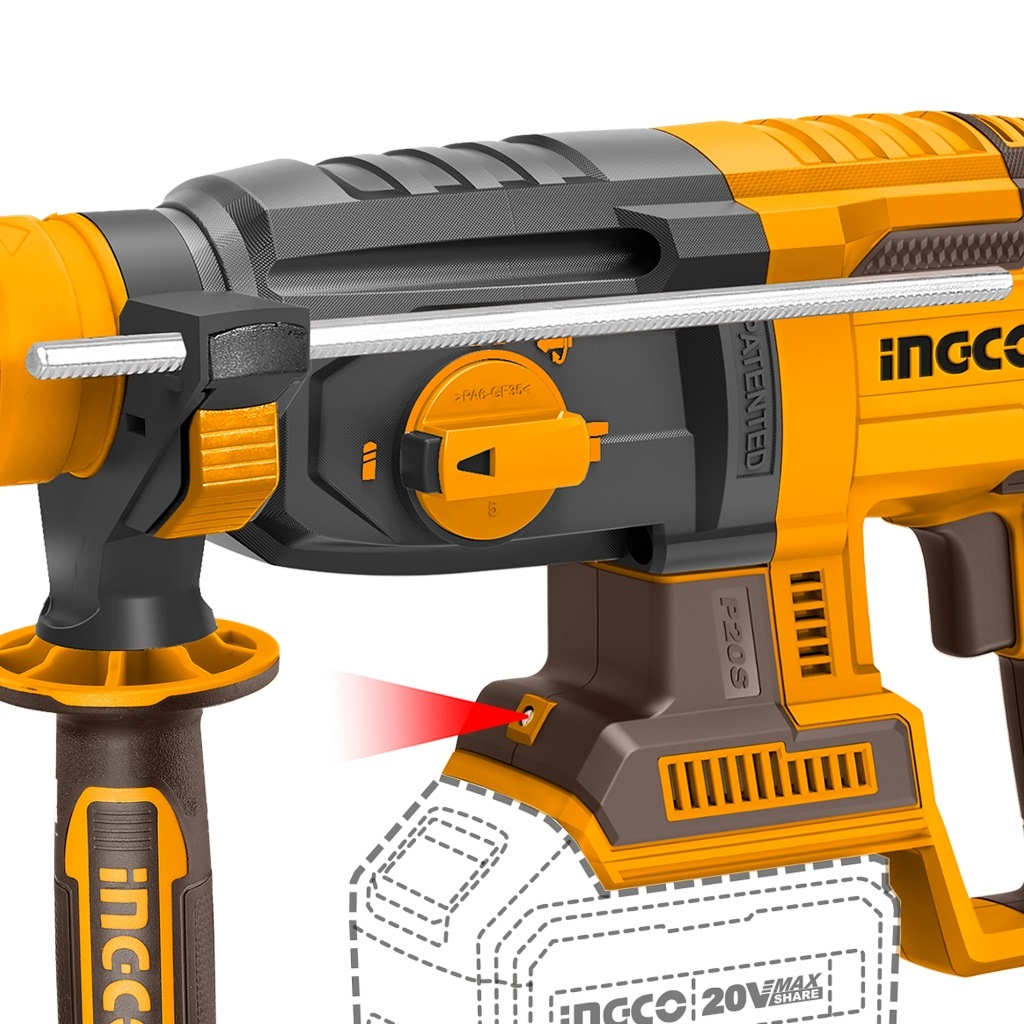 INGCO 20V 2X4.0AH LI-ION BRUSHLESS ROTARY HAMMER WITH BITS+CASE CRHLI202289