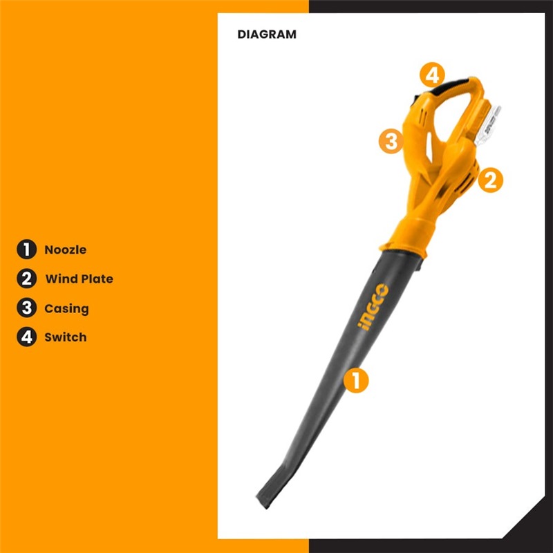 INGCO 20V LI-ION BLOWER DETACHABLE BLOW TUBE CABLI2004 (BARE UNIT)