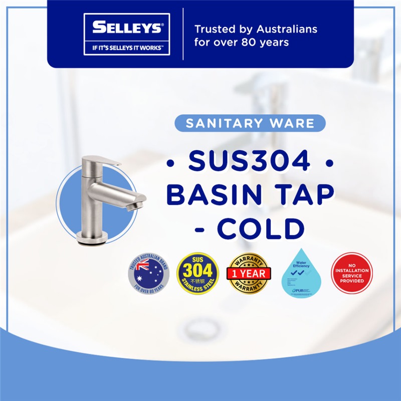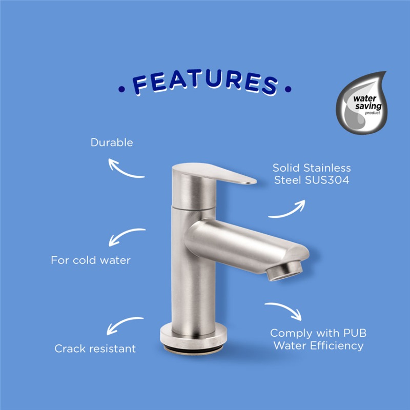 Selleys SUS304 Basin Tap – Cold is made of Solid Stainless Steel SUS304, which is both durable and crack resistant.