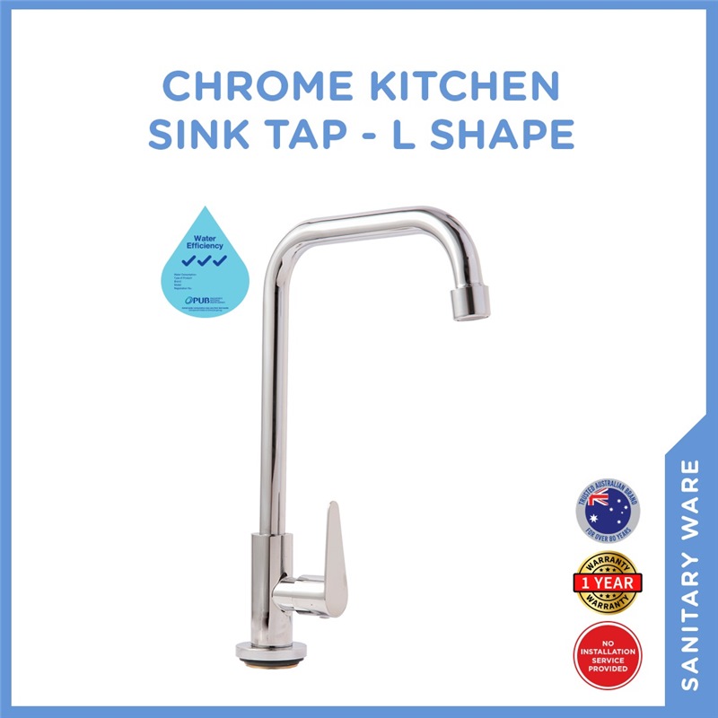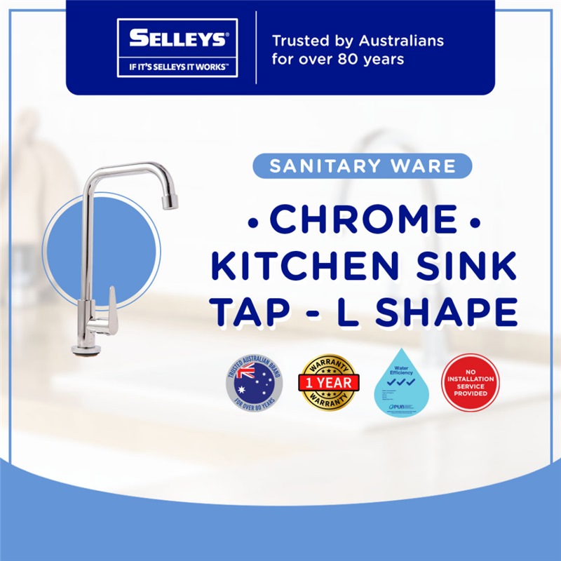 Selleys Chrome Kitchen Sink Tap – L Shape is a chrome plated copper L-shape tap that complies with PUB Water Efficiency.