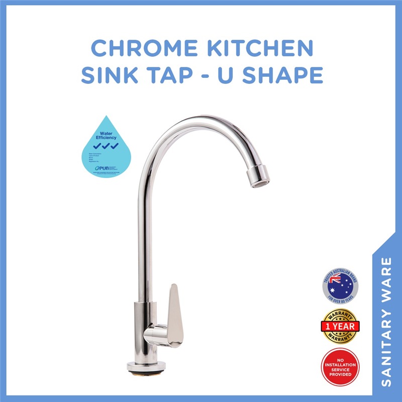 Selleys Chrome Kitchen Sink Tap – U Shape is a chrome plated copper U-shape tap that complies with PUB Water Efficiency.