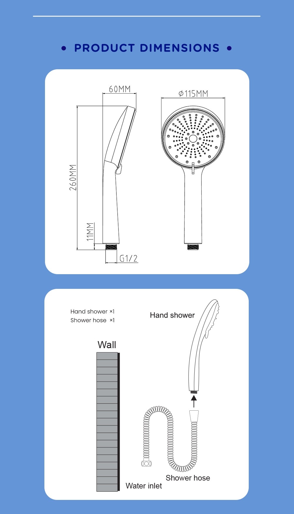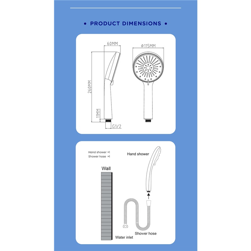 • Set comes with 1.2m shower hose