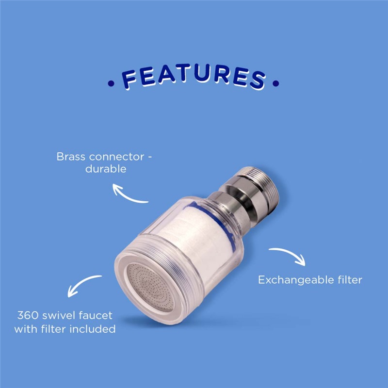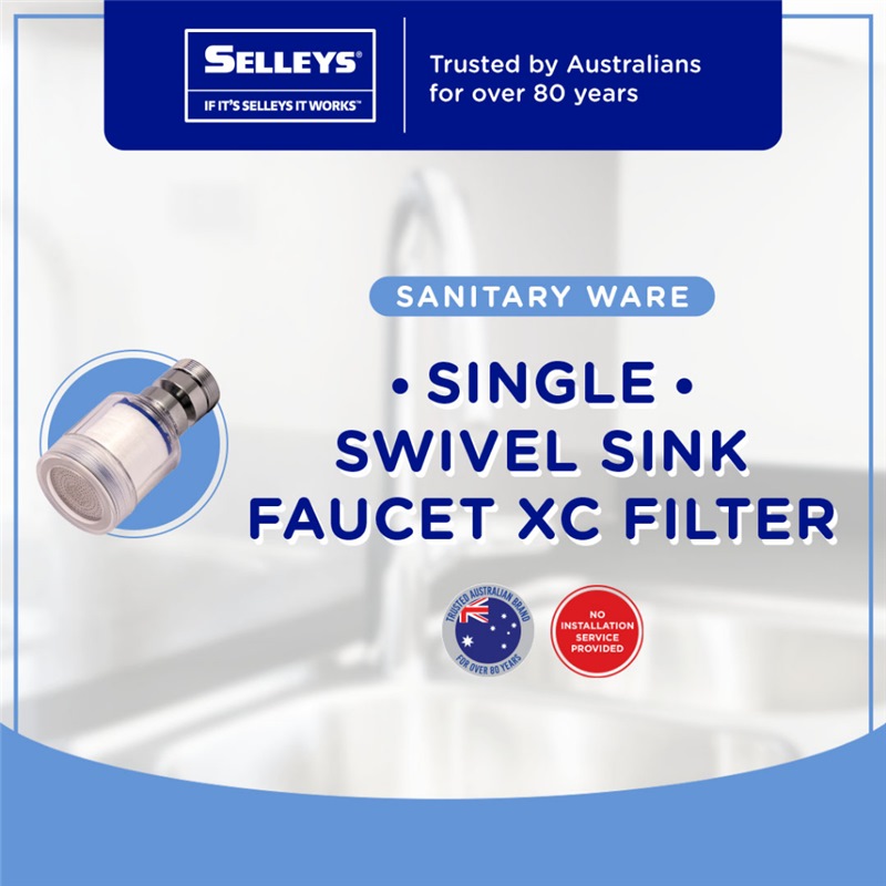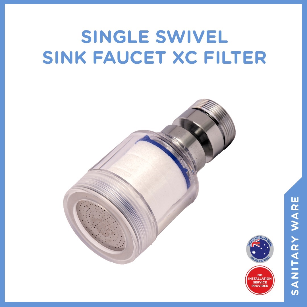 Selleys Single Swivel Sink Faucet XC Filter is a 360 swivel faucet with an exchangeable filter. This durable 360-degree swivelling faucet filter features a long-wearing, durable brass connector and an exchangeable filter. Its swivel action makes it ideal for double sinks, and comes in especially handy when soaking dishes in one sink and rinsing them in the other.