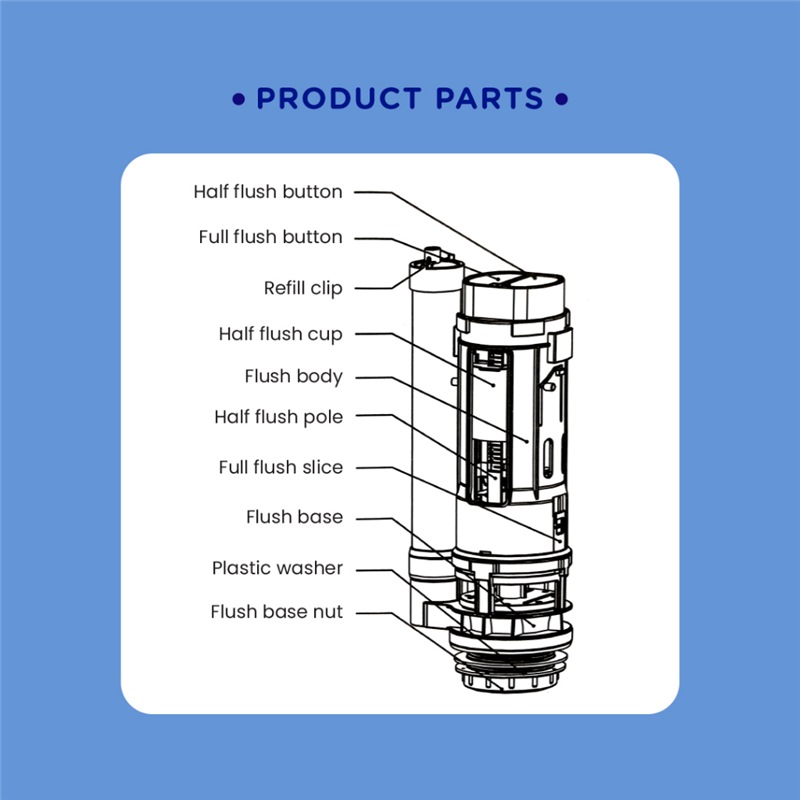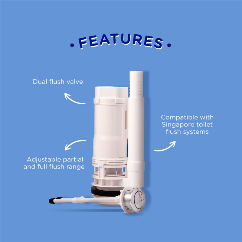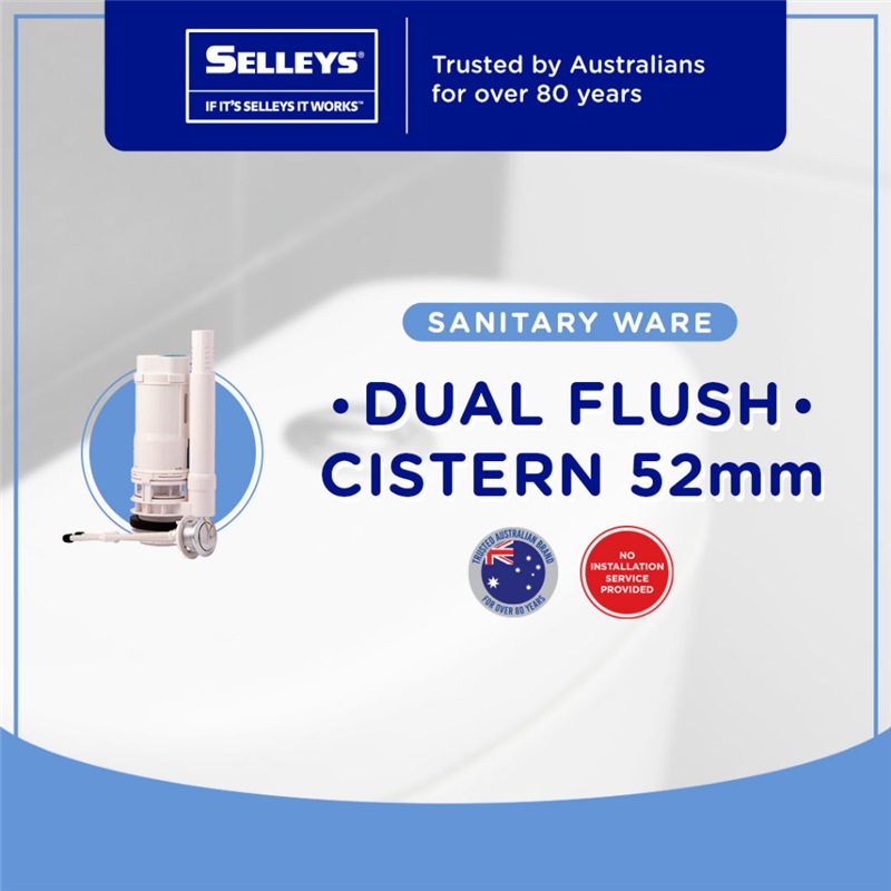 Selleys Dual Flush Cistern 52mm has a dual flush valve that allows for a partial or full flush. Ideal for Singapore toilet flush systems.