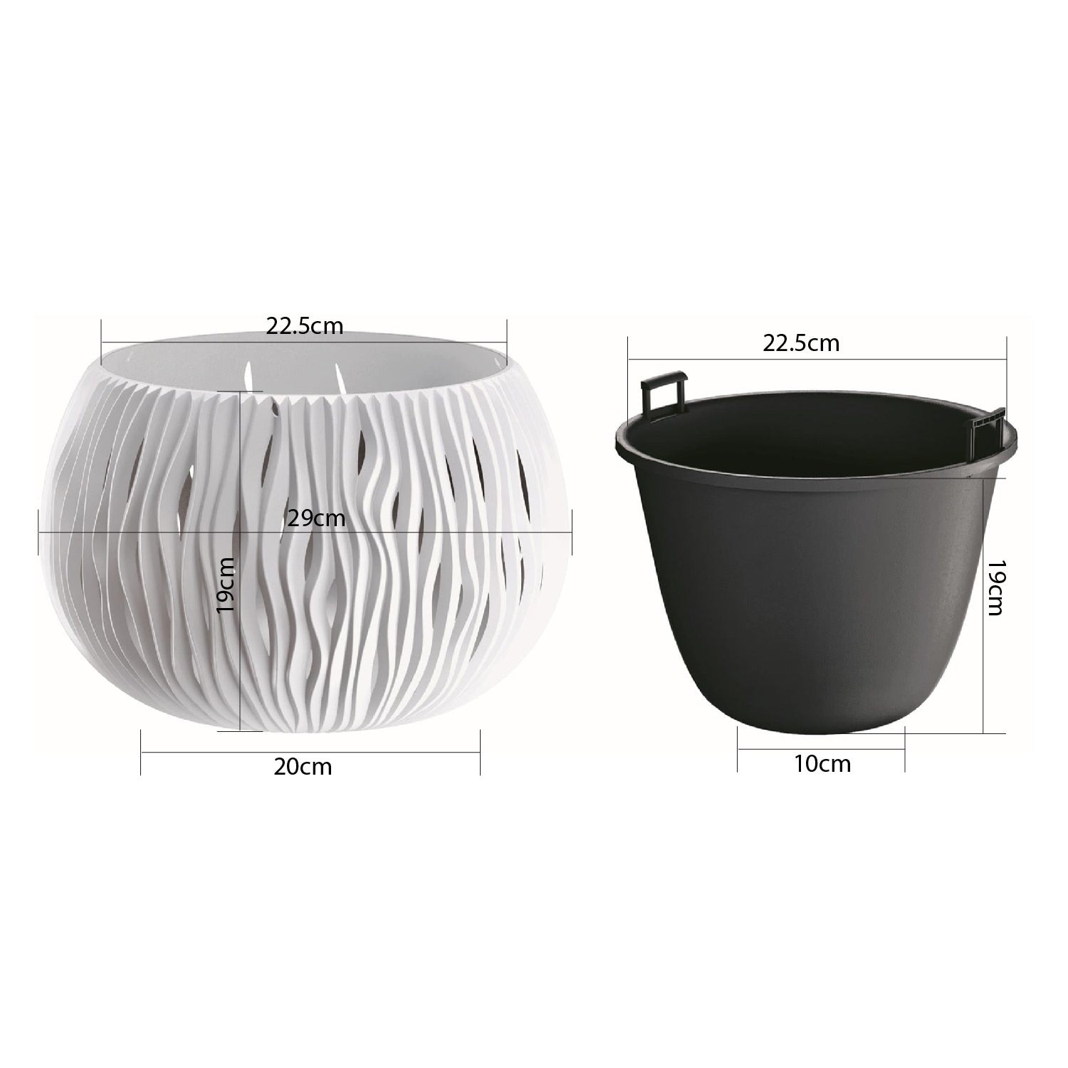 Dimensions Outer Pot: 22.5cm (Top ⌀) x 20cm (Base ⌀) x 19cm (H)
