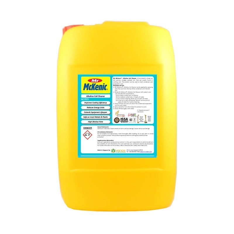 Mr McKenic® - Alkaline Coil Cleaner is an essential component in the successful cleaning and maintenance of cooling coils. Mr McKenic® - Alkaline Coil Cleaner is easy to apply and highly effective in breaking up grimes, dirt, airborne impurities, leaving coils dirt-free and shining. This product is strongly recommended for use in all routine air-con cleaning to increase efficiency and to reduce electrical cost.