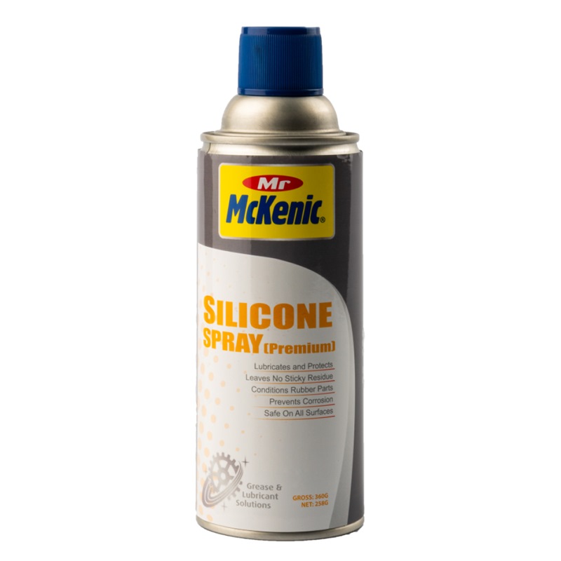 Mr McKenic®- Silicone Spray (Premium) is a premium multi-protective spray for both metal and non-metal surfaces, including rubber and plastic. Its high silicone content formula effectively lubricates, waterproofs and protects moving components without leaving sticky residue.