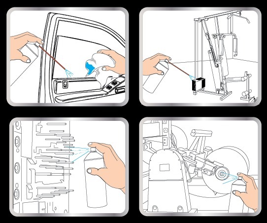 Note: Always test on a small area when used for the first time on a new surface. Consider Silicone Spray (Regular) for light-duty applications.