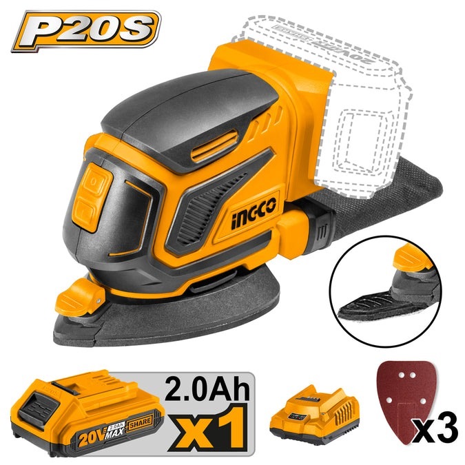 Home » Power Tools - Cordless » Other Cordless Power Tools » INGCO 20V 1X2.0AH LI-ION TRIANGLE PALM SANDER CHARGER CDSLI20511