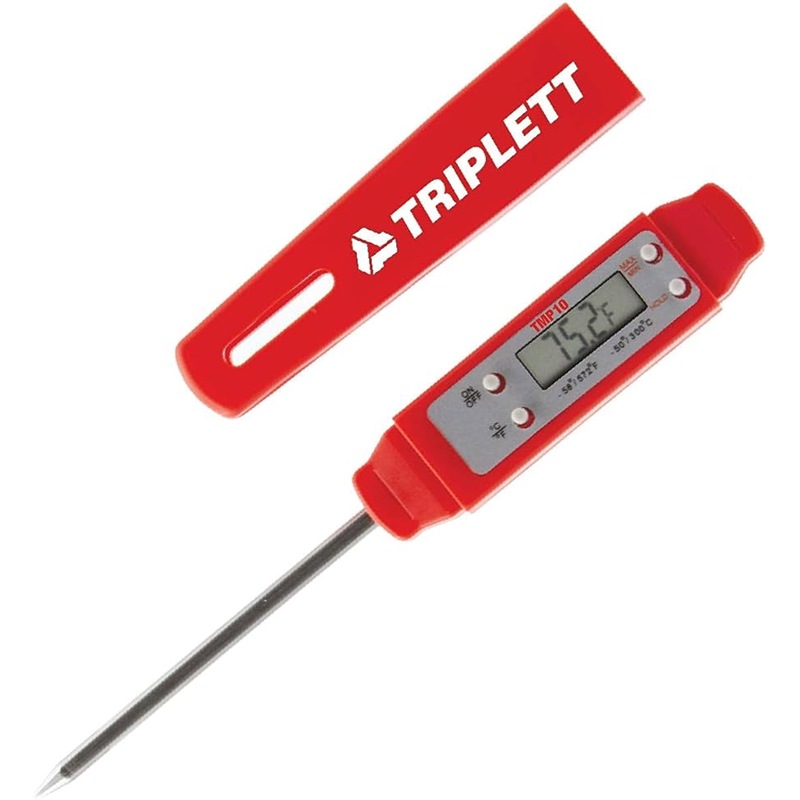 The Triplett TMP10 Pocket Thermometer has a 2.9” (73mm) food grade stainless steel probe for measuring the temperature of air, liquids and semi-solids.
