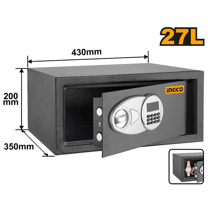 Home » Locks & Security » Safe Box » INGCO ELECTRONIC SAFE 27L 200HX430WX350D ESF3502
