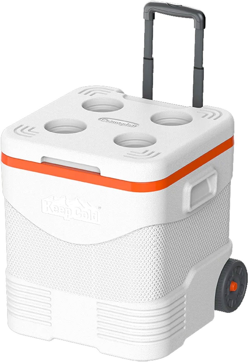 Looking for a convenient way to keep your food and drinks cool while you're on-the-go? This durable trolley icebox has got you covered. With a large capacity of up to 71 cans and features like wheels, a telescopic handle, and a leak-proof tap, you can easily transport your refreshments anywhere you want to go. The cup holders are a nice touch, ensuring you have quick and easy access to your drinks. Whether you're heading out for a picnic, camping trip, or day at the beach, this stylish and practical icebox is a must-have for keeping your food and drinks chilled and ready to enjoy.