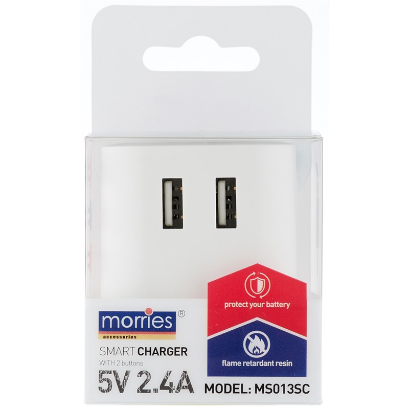 MORRIES 2.4A SMART CHARGER MS013SC (AUTO CUT-OFF)(2 IN 1 FUNCTION)