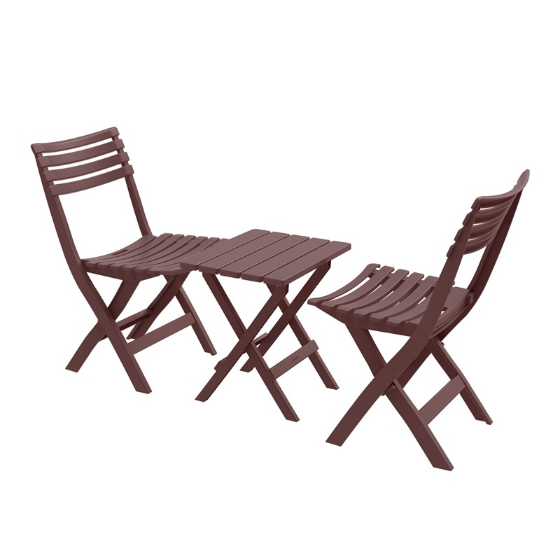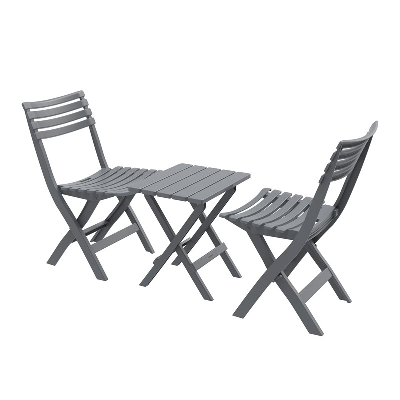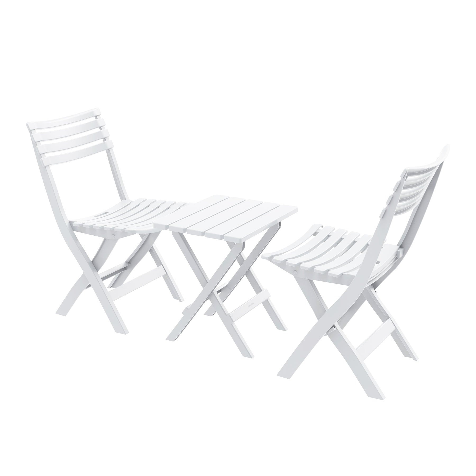 Create an outdoor oasis with this folding chair and table set. Crafted of durable, well-built plastic, it is ideal for turning any patio or porch into a hotspot for entertaining, relaxing, or enjoying the fresh air after a long work week. The portability of all three pieces makes it easy to take along on picnics and to the beach.