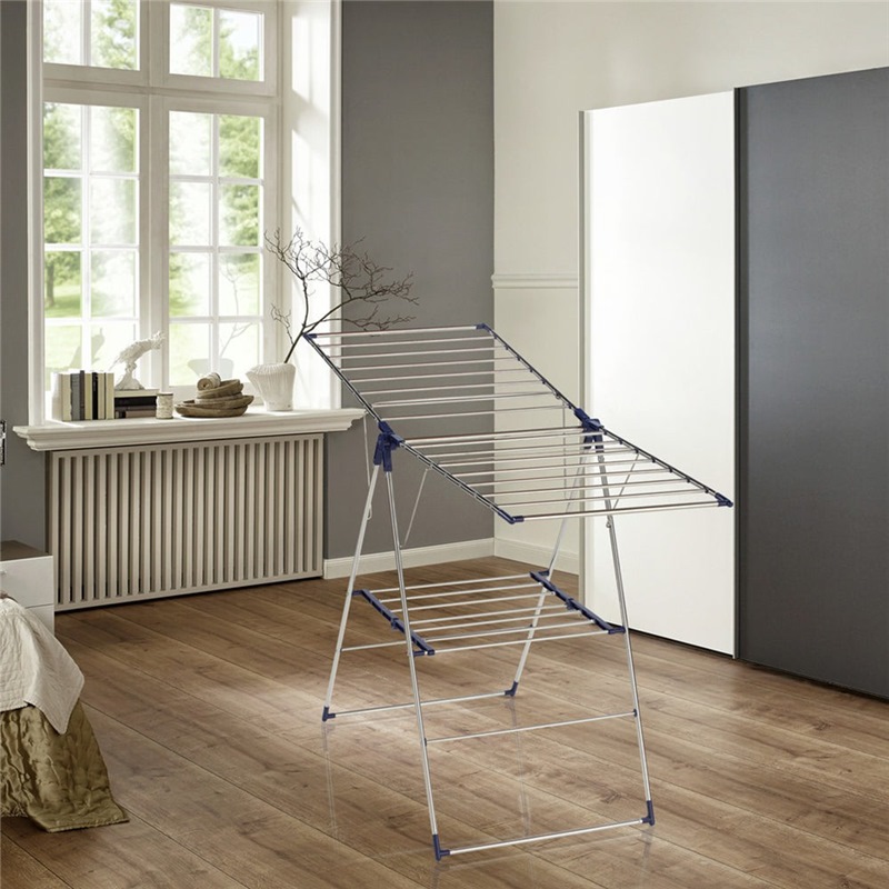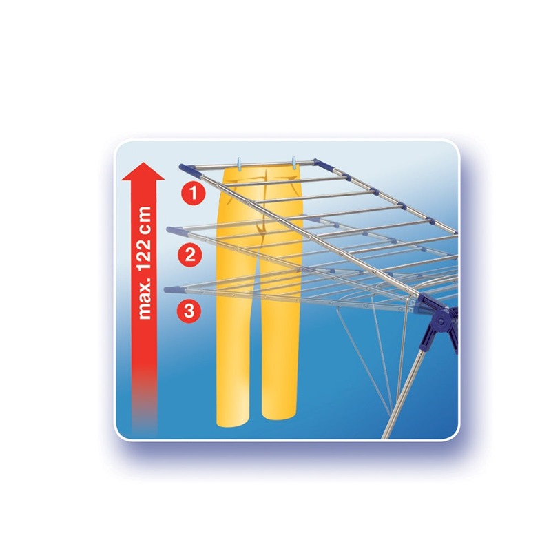 Whether on the outside or on the inside, whether new or already in use for years: Leifheit laundry dryer Roma made of high quality stainless steel offers a durable hygienic and clean drying place for the laundry. Practical: the two folding elements are adjustable to the desired height from 95 up 120 cm. Long laundry items like trousers or bath towels can be dried without problems. With 15 m drying length the laundry dryer Roma offers space for approx. Holds 1.5 loads of laundry.6
