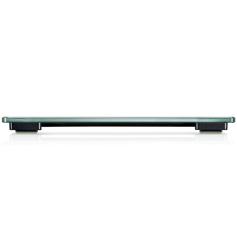 Its large platform made of extra-strong safety glass is impressive, particularly as is the convenient automatic on/off function, the scale switching on immediately when stepping on to the surface and turning off after weighing.