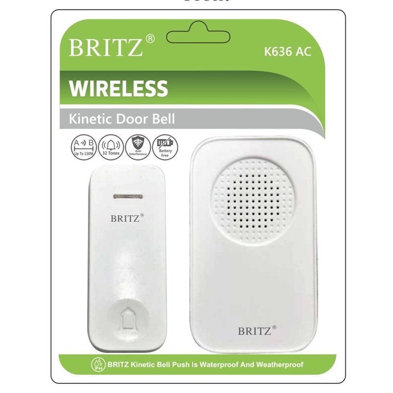 BRITZ K636AC Kinetic Wireless Doorbell Is Ideal For Home, Office and Commercial Usage.