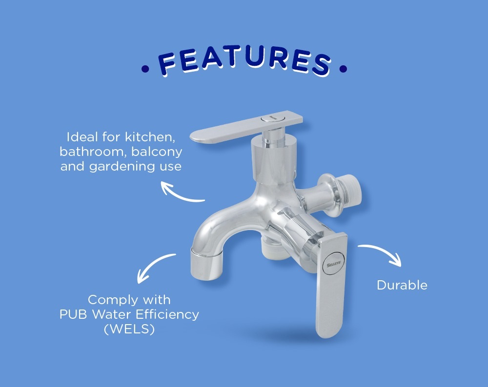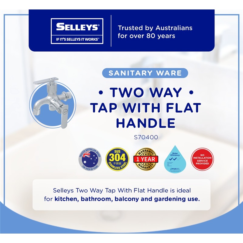 Selleys Two Way Tap With Flat Handle is ideal for kitchen, bathroom, balcony and gardening use.