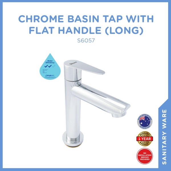 Selleys Chrome Basin Tap With Flat Handle is made for cold water and complies with PUB Water Efficiency (WELS).