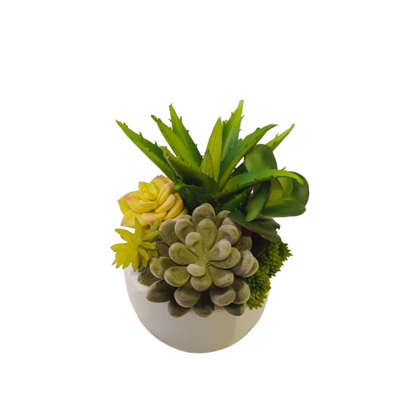 MULTIPLE AGAVE PLANTS WITH WHITE ROUND POT - TABLE SIZE [FAKE]