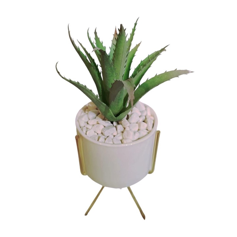 HOHENBERGIA PLANT WITH WHITE POT & GOLD STAND (GREEN) - TABLE SIZE [FAKE]