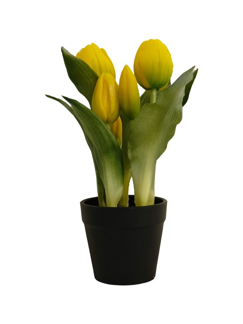 YELLOW TULIP PLANT WITH BLACK POT - TABLE SIZE [FAKE]