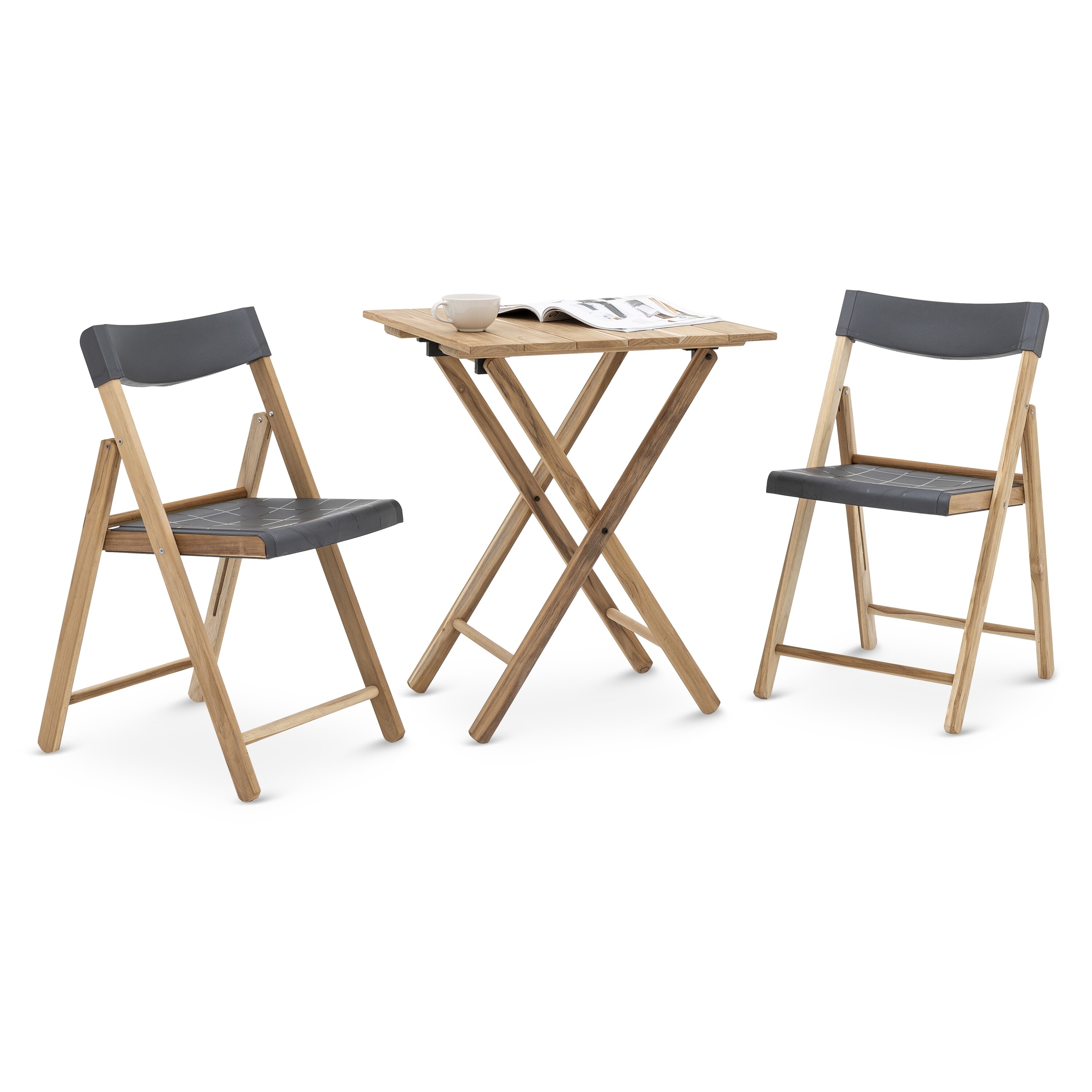 TRAMONTINA TEAK WOOD OUTDOOR TABLE & CHAIR SET POTENZA WOOD/GRAPHITE 106300