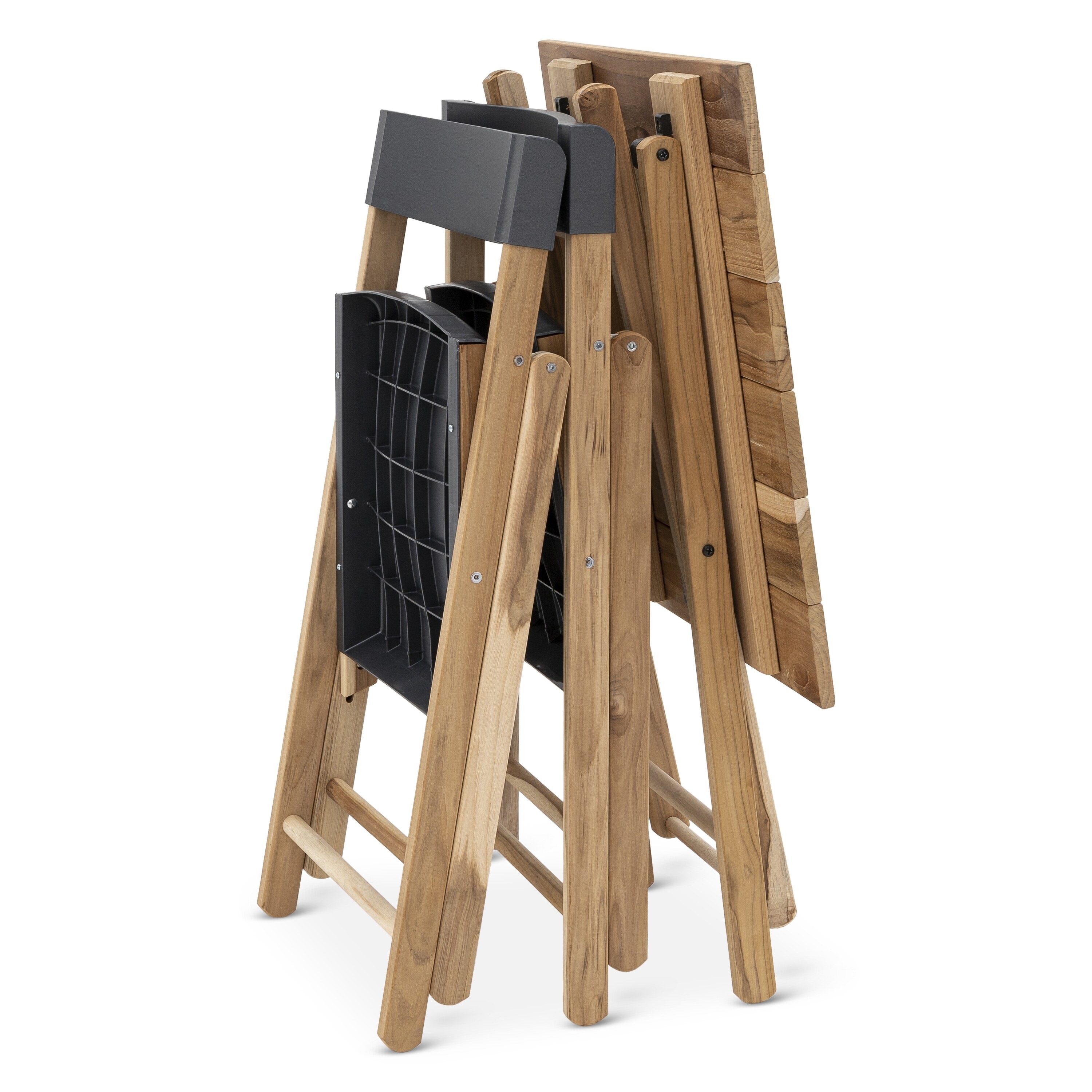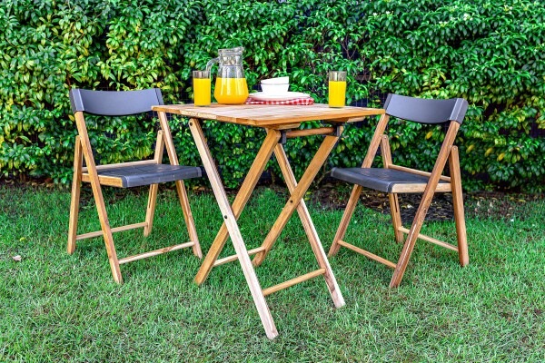 They are foldable furniture, produced in solid Teak wood, coming from reforestation, are light and practical, suitable for environments with reduced space. Because they are foldable, they are easy to transport and can be stored anywhere.