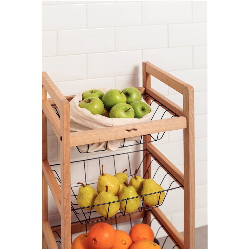Your kitchen will get a special touch with Tramontina's teak wood from the Utilínea Line. Incredibly versatile and with a distinctive design, it is perfect for organising your fruit and vegetables and keeping them fresh. This teak wood rack also has casters for easy moving. Compact, and convenient to accommodate indoors!