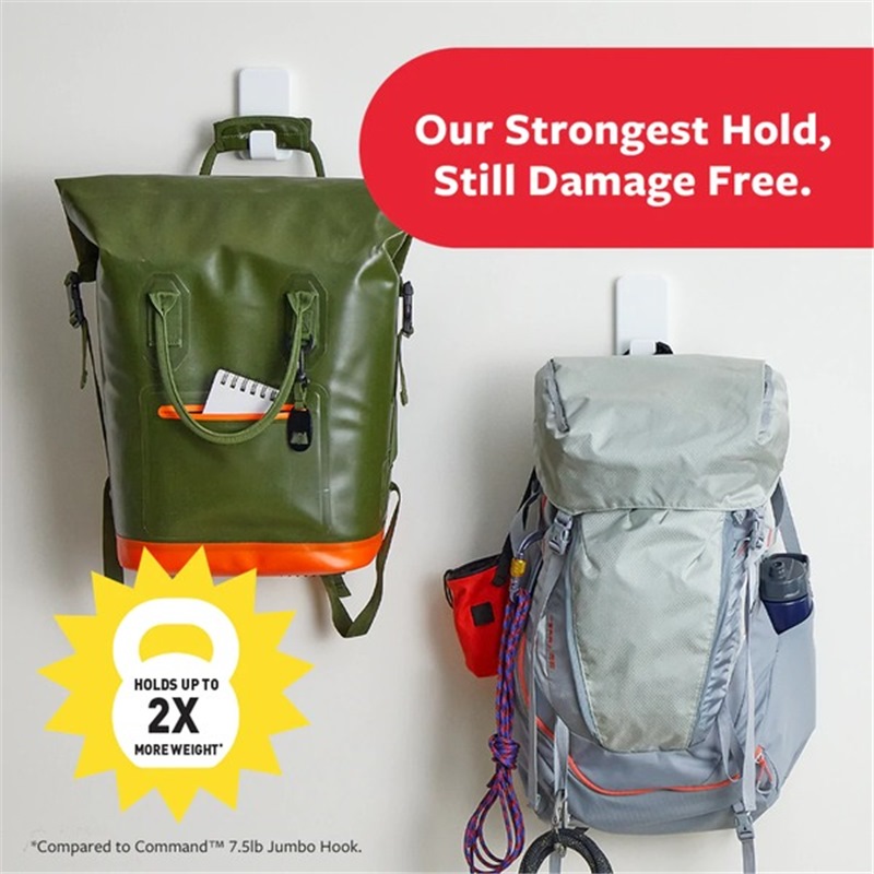 Life is easier when everything has its place. Hang heavy items up to 10lbs with damage-free with Command Utility Hook. Command Hooks let you hang what you want, where you want, without the hassle of tools and nails. Command Strips hold strongly on a variety of smooth, finished surfaces, and these adhesive hooks remove cleanly with no sticky residue or damage left behind. Now you can organize your home or office just the way you want with Command Heavyweight Hooks.