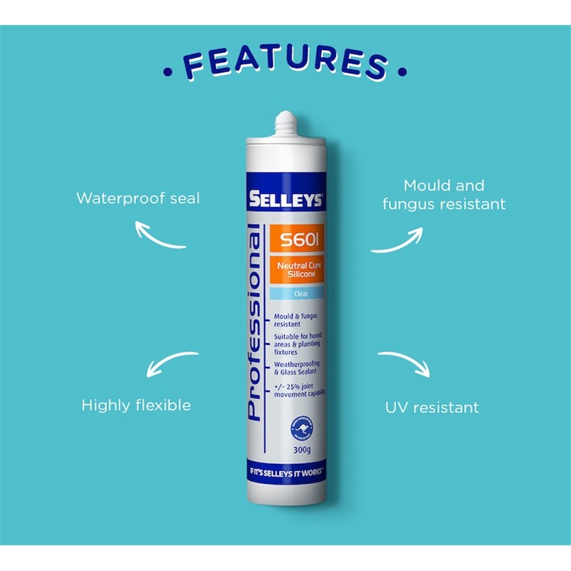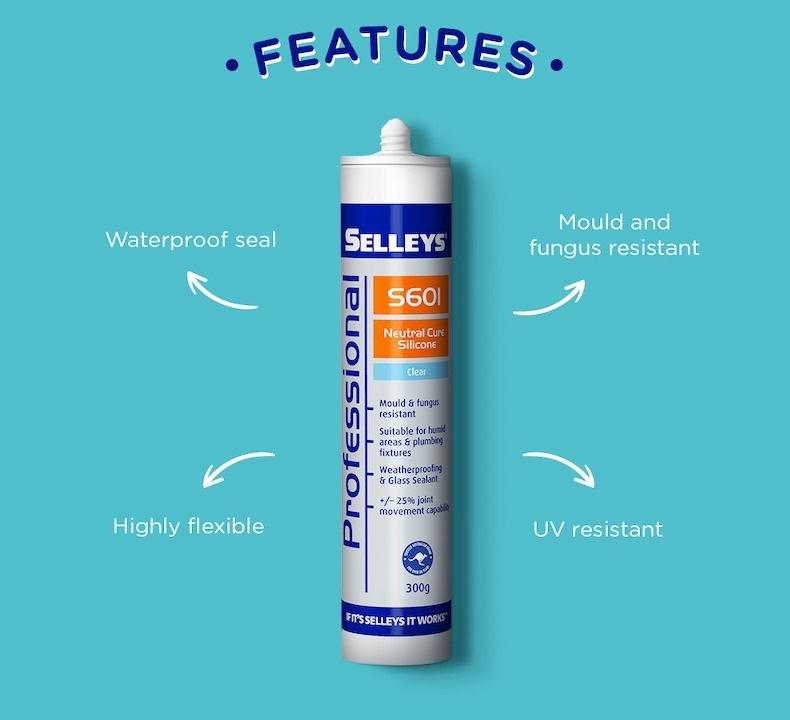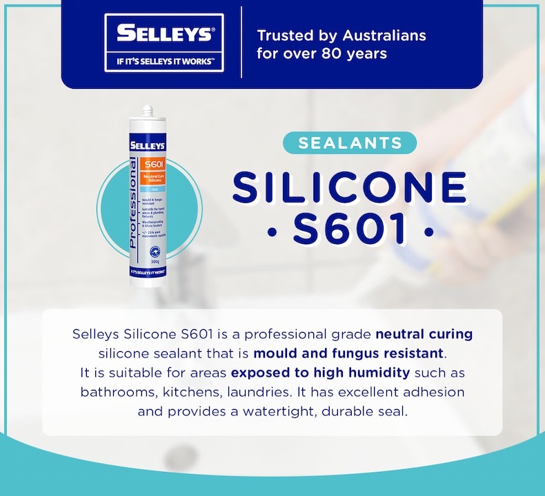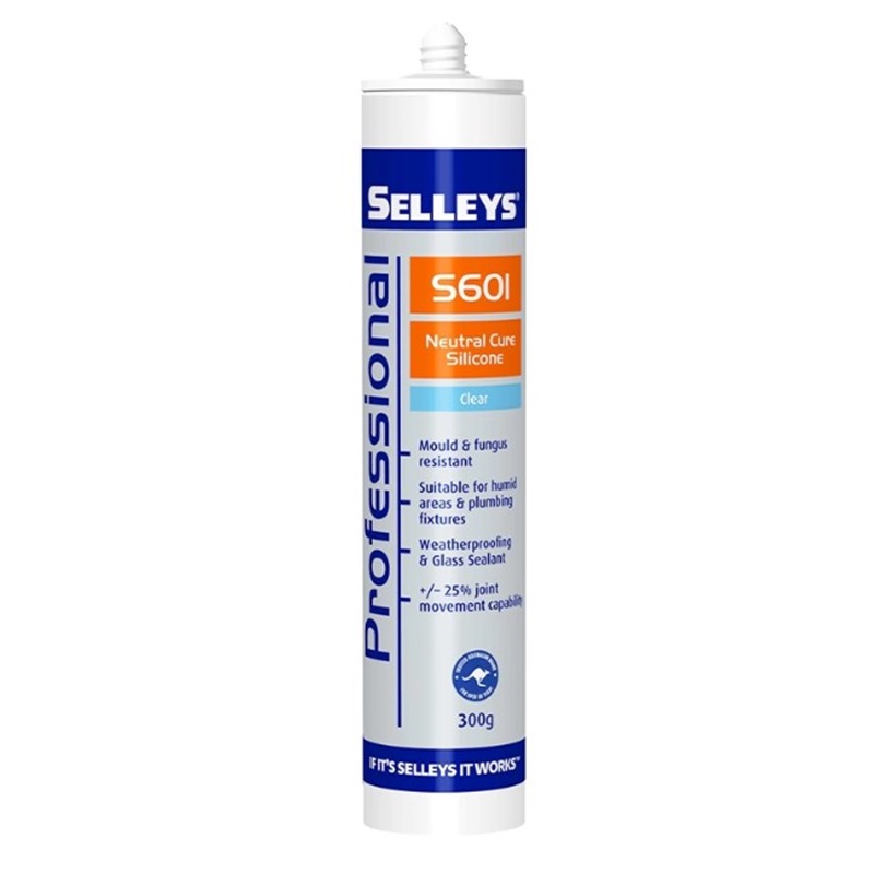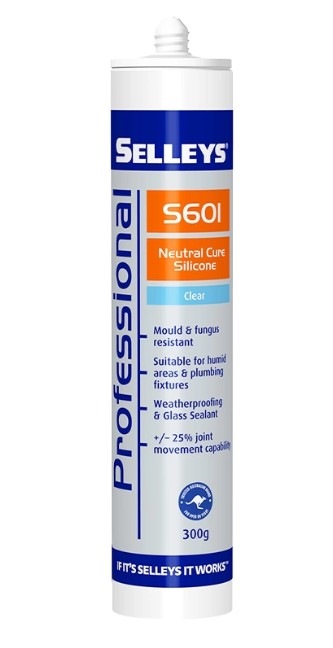 Selleys Silicone S601 is a professional grade neutral curing silicone sealant that is mould and fungus resistant. It is suitable for areas exposed to high humidity such as bathrooms, kitchens, laundries. It has excellent adhesion and provides a watertight, durable seal.