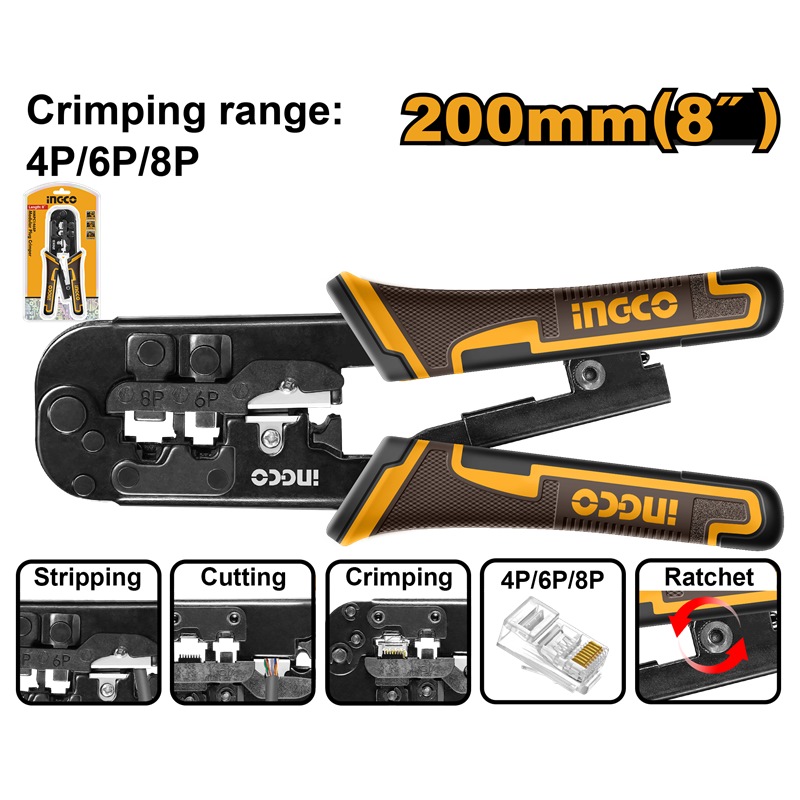 INGCO MODULE PLUG CRIMMPER 8"200MM RANGE 4P,6P&8P HMPCN2468R