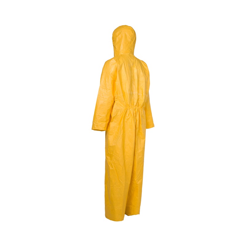 DuPont™ Tychem® C, hooded coverall. Elasticated face, wrists, waist and ankles for an optimal fit, thumb loops prevent sleeves from riding up. Self-adhesive chin flap for tight seal of suit to face-masks. Made from a lightweight and durable fabric (