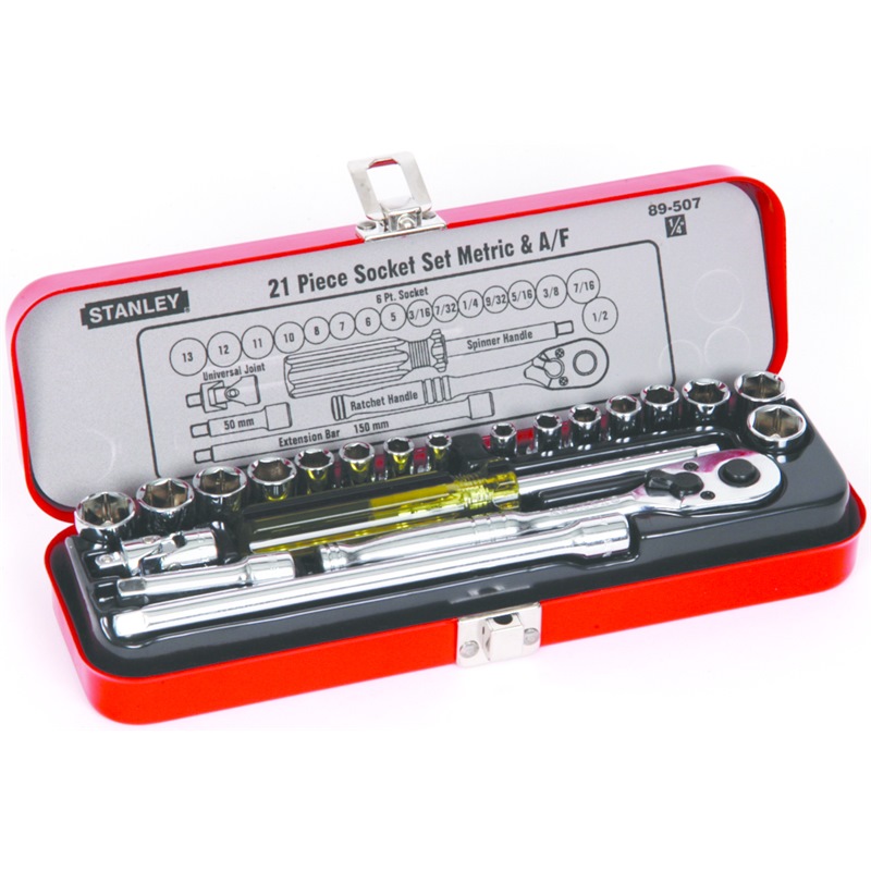 Home » Hand Tools » Hand Tool Sets & Accessory Kits » STANLEY SOCKET SET 1/4 21PC MM&AF 89-507