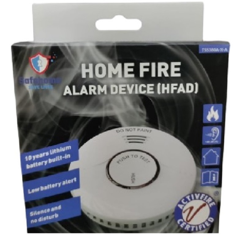 The SafeHome TSS380A is a battery operated smoke detector which utilises a photoelectric sensor. Photoelectric technology allows the detector to be more sensitive to detecting slow smoldering fires which generate thick black smoke and little heat.