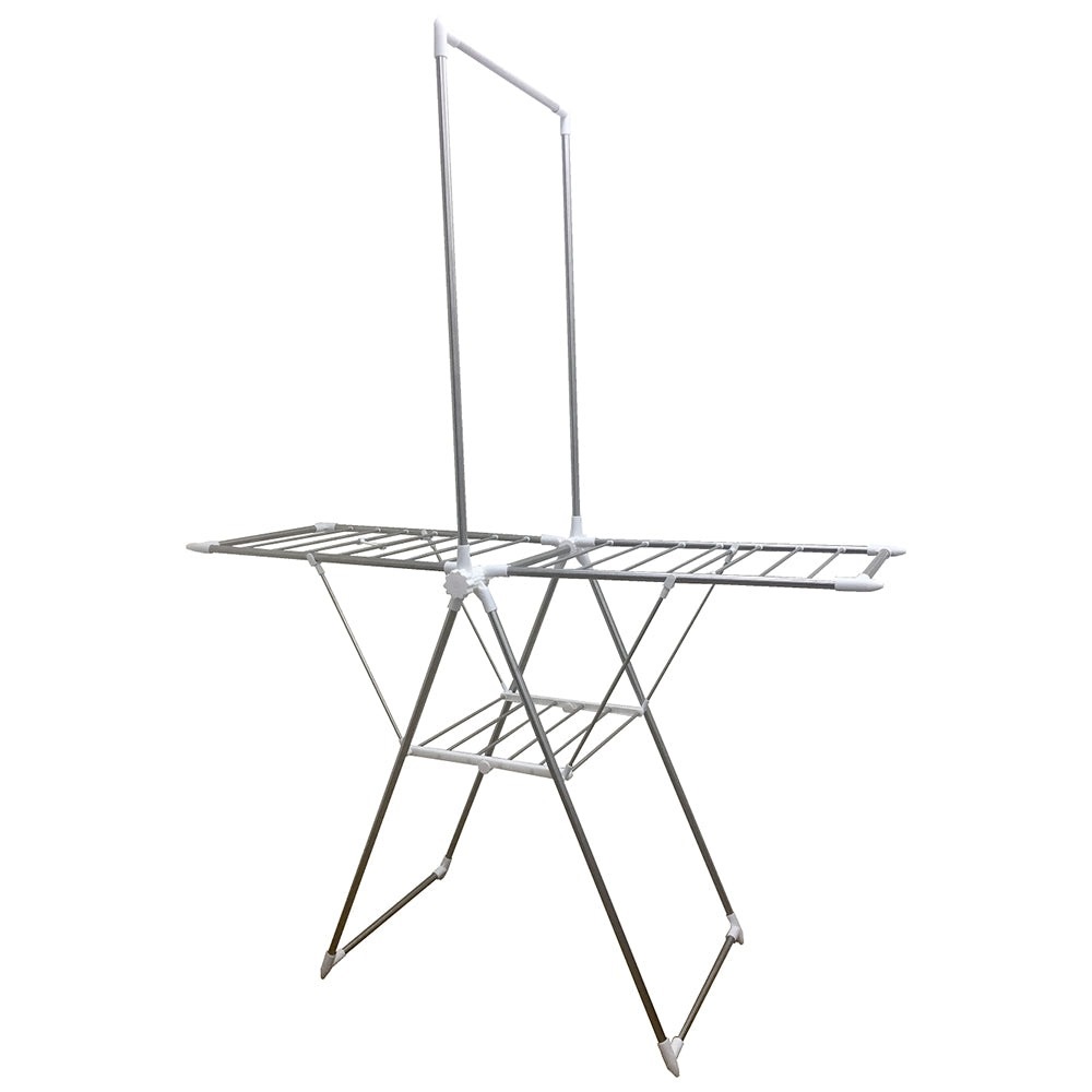 The overhead hanger allows you to have additional drying space and hang items from hangers as well.