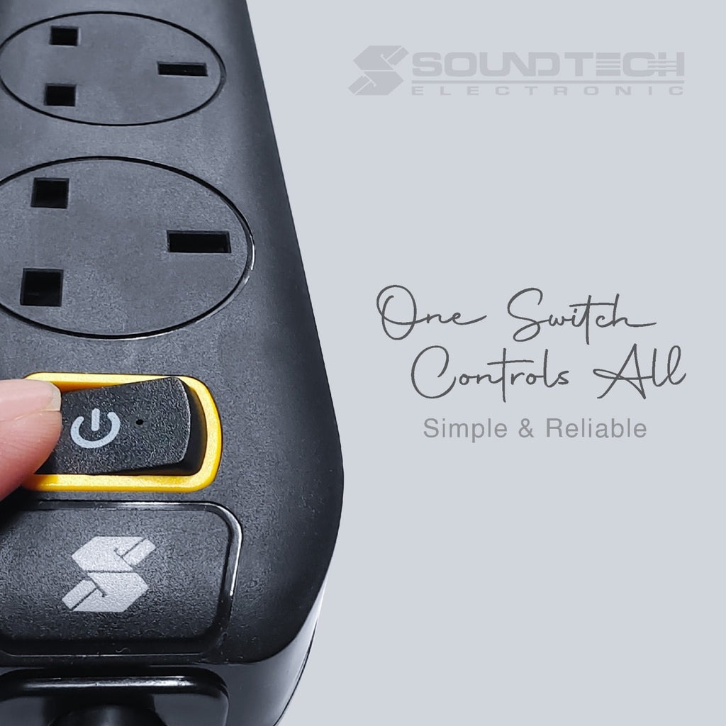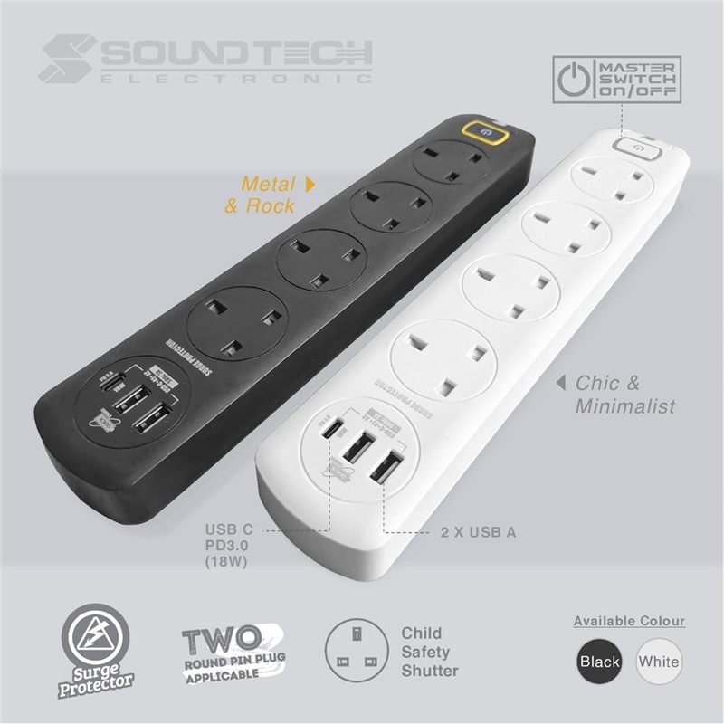 Home » Electrical & Lighting » Extension Cords & Travel Adaptors » SOUNDTECH 4 WAY EXTENSION SOCKET WITH USB A+C MS-641