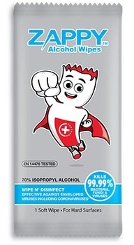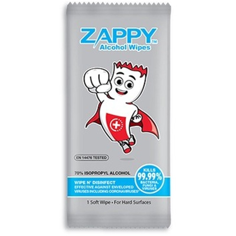 Zappy Alcohol Wipes contain 70% Isopropyl alcohol solution. Its fast acting solution is able to effectively kill 99.99% bacteria, fungi and viruses. Tested against EN 14476 – effective against enveloped viruses including Coronaviruses. Your essential first aid and surface disinfection product. Our Zappy 70 Isopropyl Alcohol products are now retested and proven to kill enveloped viruses including Coronaviruses and Monkeypox virus* in just 30 seconds.