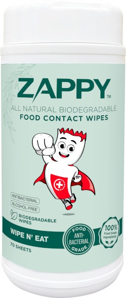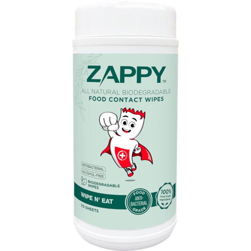 ZAPPY ALL NATURAL FOOD CONTACT WIPES CANISTER 70'S