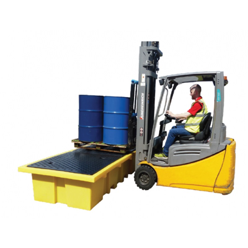 This robust spill pallet allows you to store 2 x 1000ltr IBCs side by side on the plastic mesh deck. Manufactured from polyethylene for total corrosion protection and broad chemical compatability it has removable decking making it easy to clean and forklift pockets for easy loading. This products meet current legislation guidelines ensuring your compliance with UK, EC and Worldwide regulations.