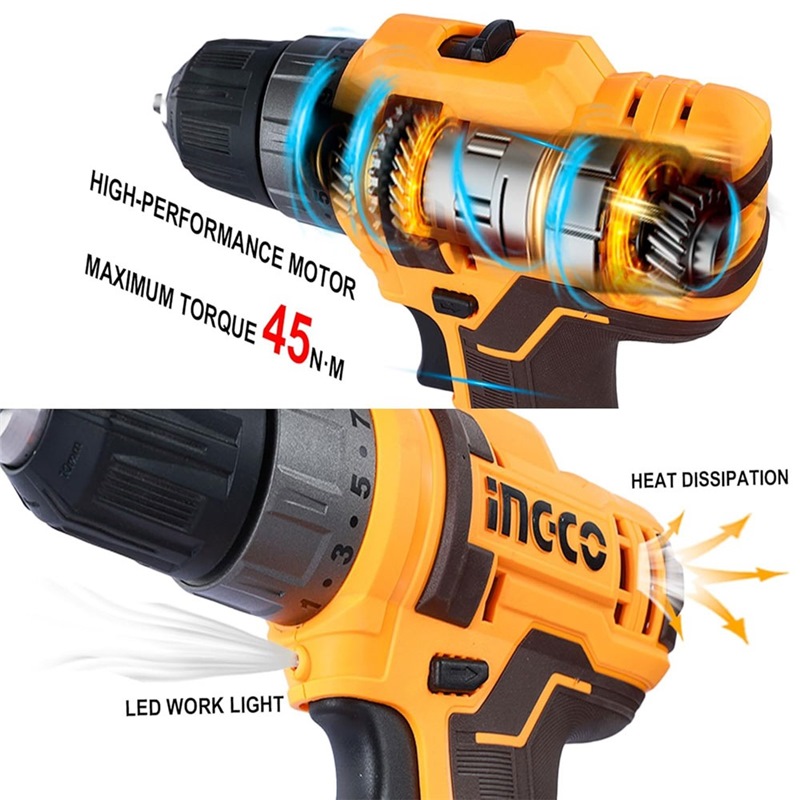 INGCO 20V LI-ION DRILL 45NM 1X20V 2.0AH, CHARGER CDLI200518
