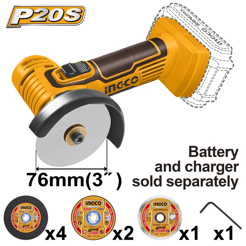 Home » Power Tools - Cordless » Bare Units » INGCO 20V LI-ION MINI CUT-OFF TOOL 76MM CAGLI7601 (BARE UNIT)