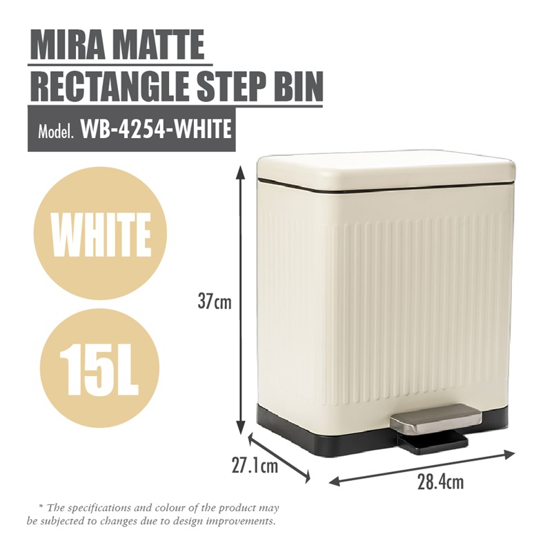 HOUZE 15L MIRA MATTE RECTANGLE STEP BIN WB-4254